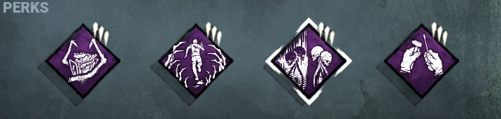 Pozn.: Toto je kombinace perků, která mě sedí velmi komfortně. Ruin proto, abych měl pasivní tlak na přeživší. Přeživší nechtějí hrát proti ruinu. Budou se ho snažit zničit (cleanse). Jeho hledáním stráví nějaký čas, který mohli strávit na generátoru a pokud ho zničí tak Hex: Undying převede efekt Ruinu na sebe a přeživší musí cleansnout totem znova. Stejně to platí i u totemu Hex: Blood Favour.